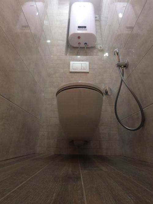 Наша маленькая студия бюджет на ремонт был очень ограничен, пришлось купить дешевую временную кухню, но мы не жалуемся.